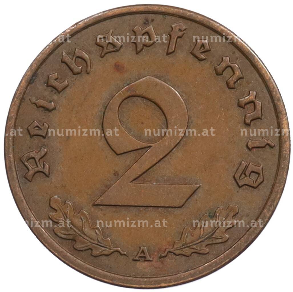 Монета 2 рейхспфеннига 1939 года A Германия (Артикул: K10-4926): подробные характеристики, качественные фотографии в высоком разрешении, низкая цена.