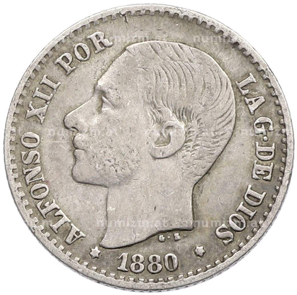 Монета 50 сентимо 1880 года Испания (Артикул: K10-4960): подробные характеристики, качественные фотографии в высоком разрешении, низкая цена.