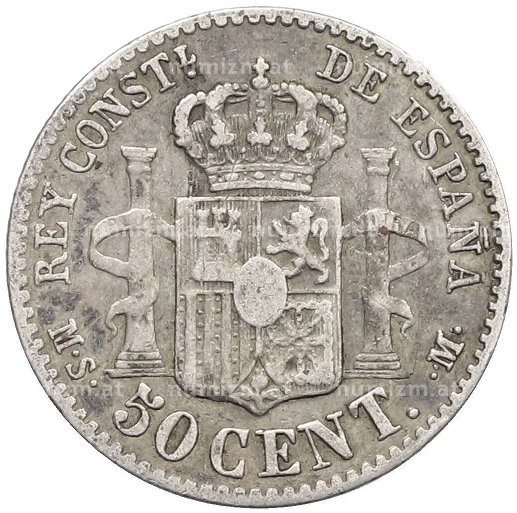 Монета 50 сентимо 1880 года Испания [Артикул: K10-4960]