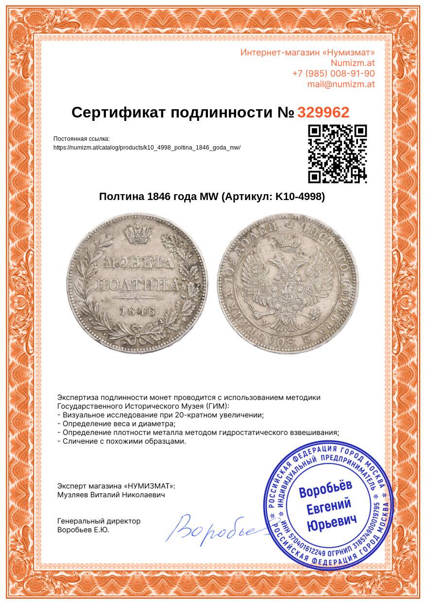 Купить Полтина 1846 года MW по привлекательной цене можно в нашем интернет-магазине — Вам достаточно оформить заказ на сайте. Все монеты, представленные в каталоге, находятся в наличии на нашем складе.