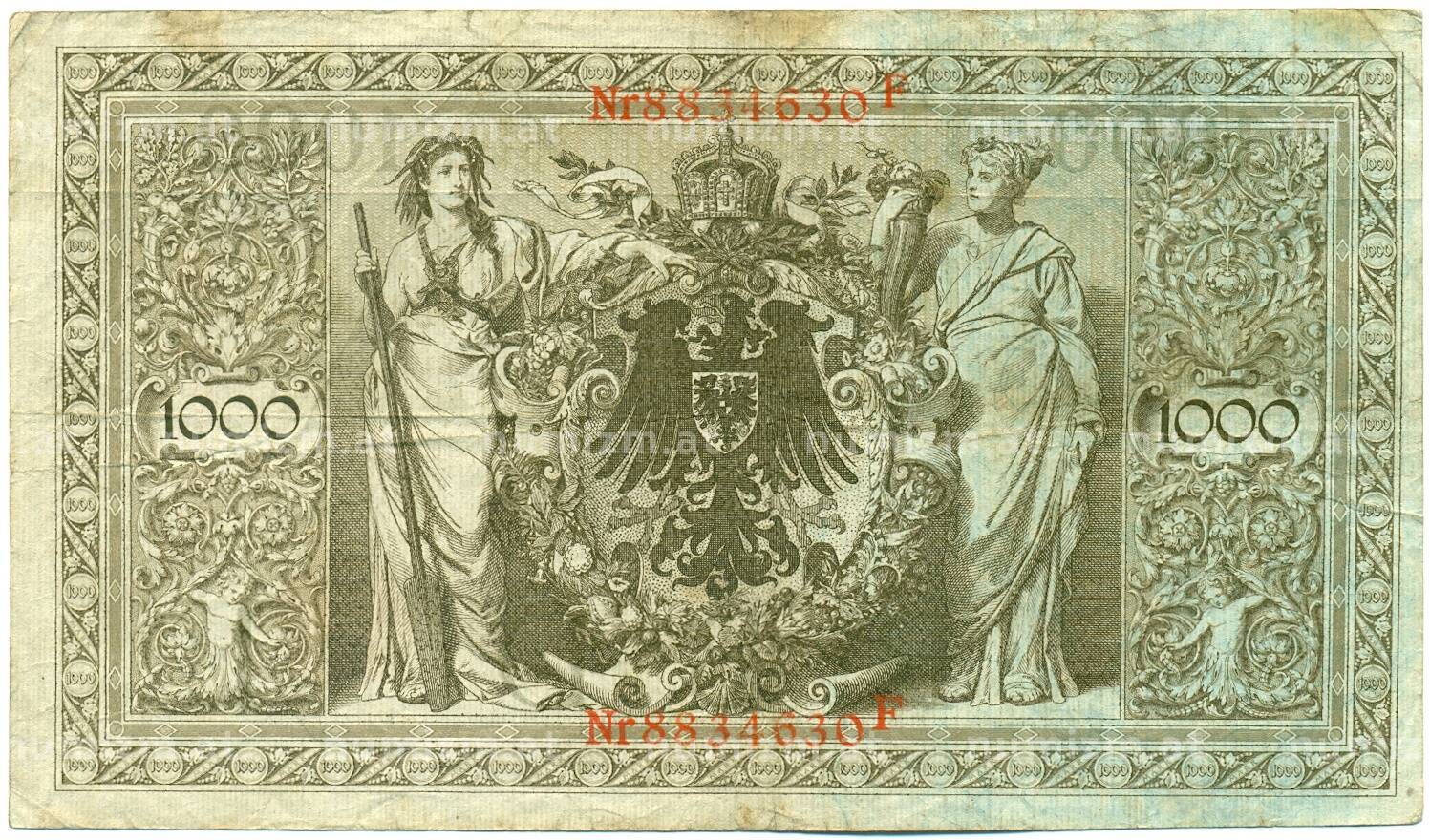 Банкнота 1000 марок 1910 года Германия (Артикул: K10-5052): подробные характеристики, качественные фотографии в высоком разрешении, низкая цена.