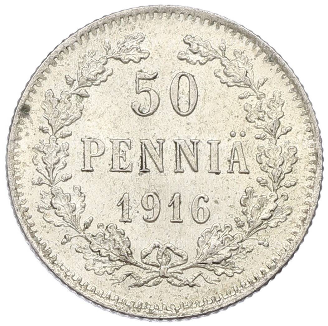 Монета 50 пенни 1916 года Русская Финляндия (Артикул: K10-5235): подробные характеристики, качественные фотографии в высоком разрешении, низкая цена.