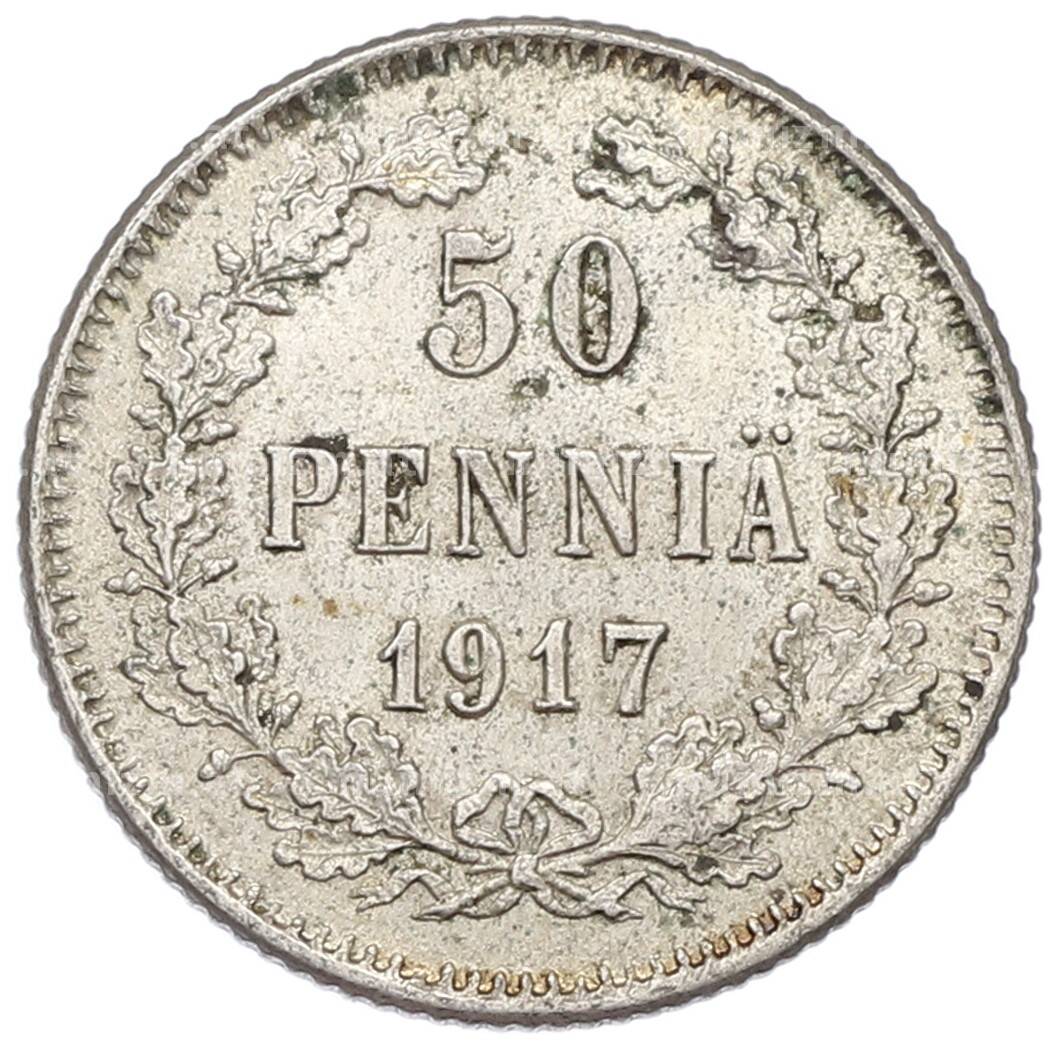 Монета 50 пенни 1917 года Русская Финляндия — Орел без корон (Временное правительство) (Артикул: K10-5244): подробные характеристики, качественные фотографии в высоком разрешении, низкая цена.