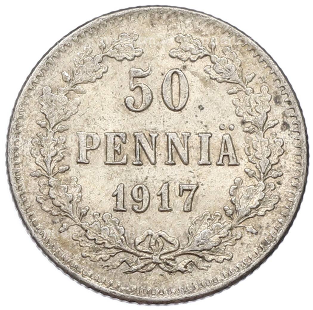 Монета 50 пенни 1917 года Русская Финляндия — Орел без корон (Временное правительство) [Артикул: K10-5249]