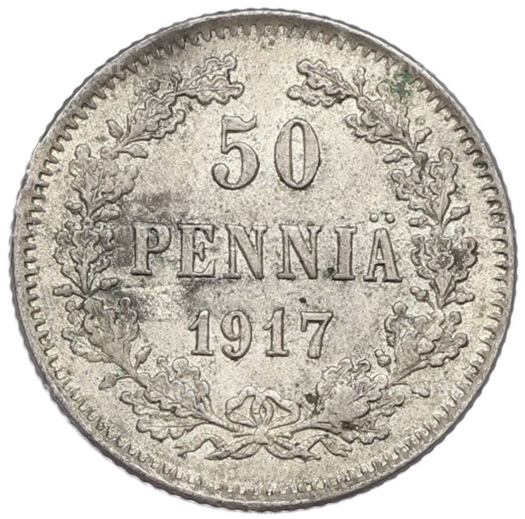 Монета 50 пенни 1917 года Русская Финляндия — Орел без корон (Временное правительство) [Артикул: K10-5251]