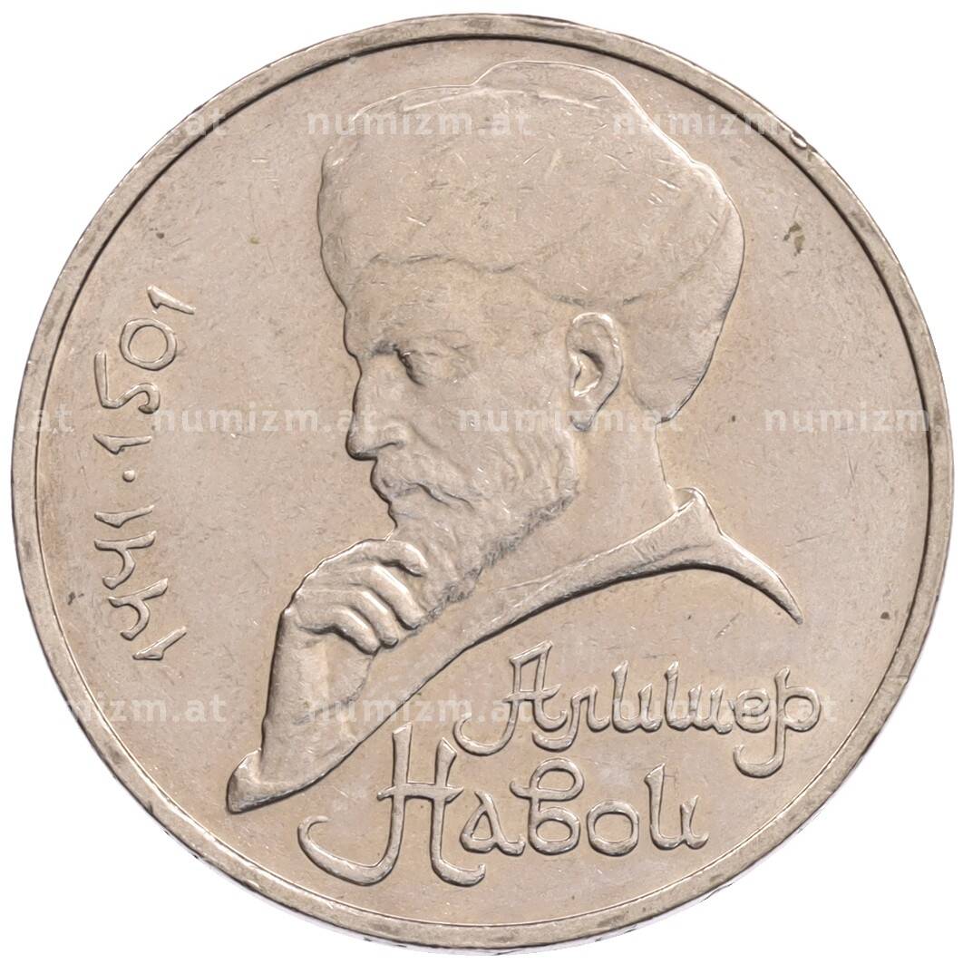 Монета 1 рубль 1990 года «Алишер Навои» — ошибка (дата 1990 вместо 1991) [Артикул: K10-5264]