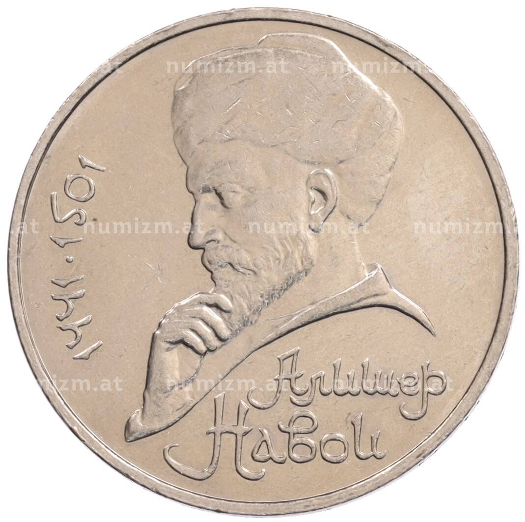 Монета 1 рубль 1990 года «Алишер Навои» — ошибка (дата 1990 вместо 1991) [Артикул: K10-5266]