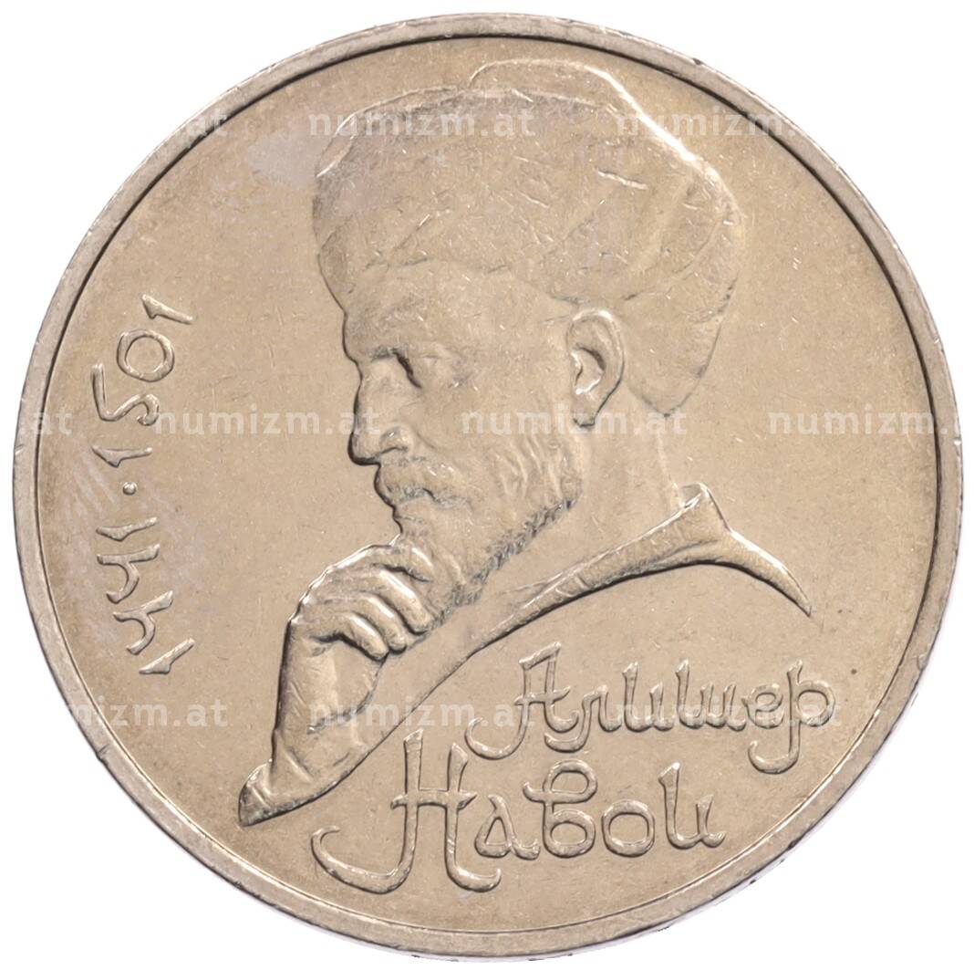 Монета 1 рубль 1990 года «Алишер Навои» — ошибка (дата 1990 вместо 1991) [Артикул: K10-5271]