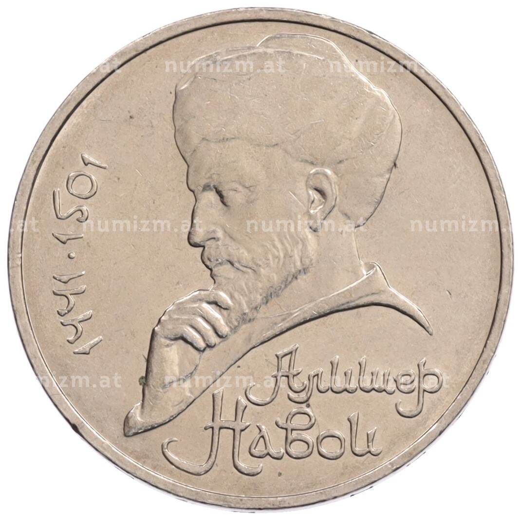 Монета 1 рубль 1990 года «Алишер Навои» — ошибка (дата 1990 вместо 1991) [Артикул: K10-5273]