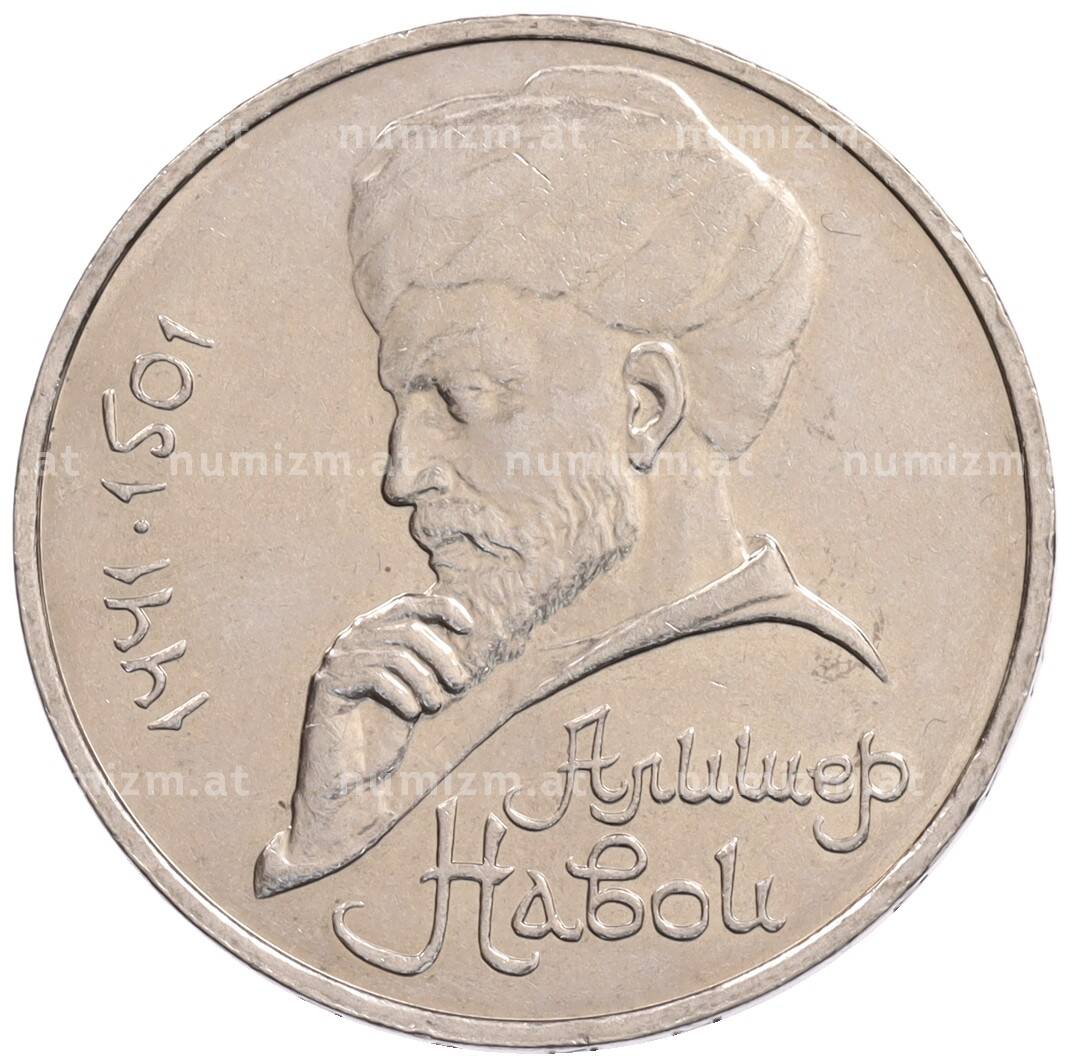 Монета 1 рубль 1990 года «Алишер Навои» — ошибка (дата 1990 вместо 1991) [Артикул: K10-5275]