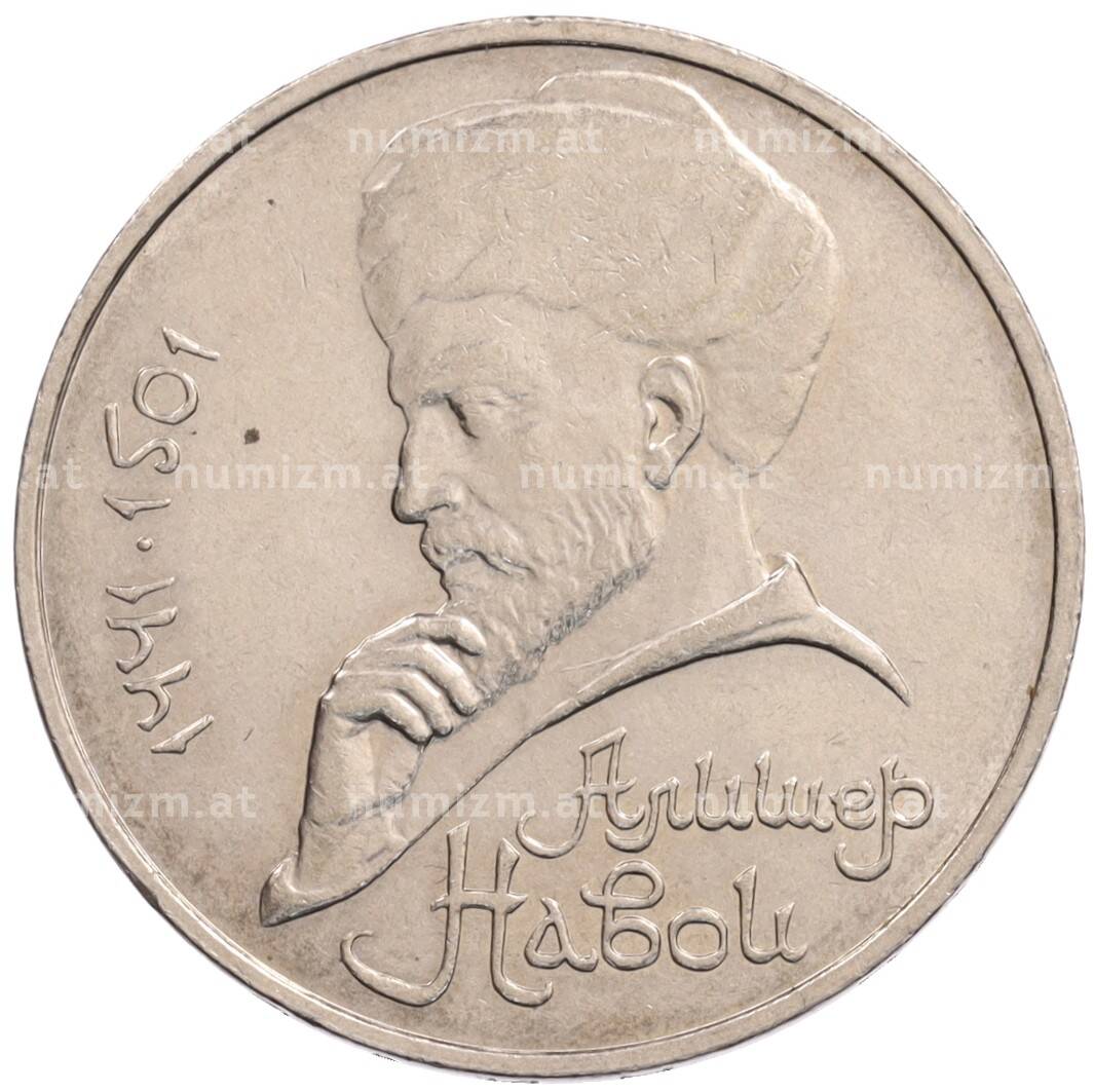 Монета 1 рубль 1990 года «Алишер Навои» — ошибка (дата 1990 вместо 1991) [Артикул: K10-5276]