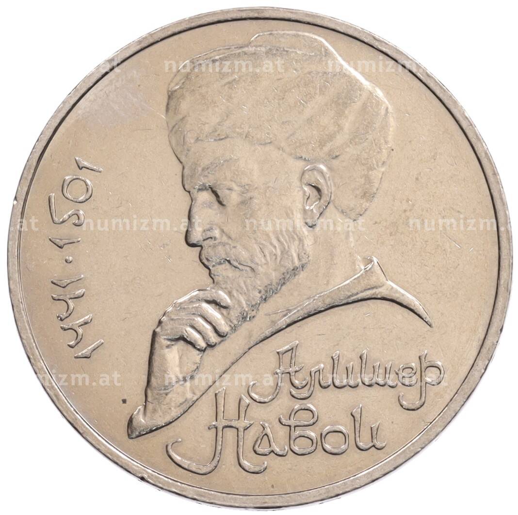Монета 1 рубль 1990 года «Алишер Навои» — ошибка (дата 1990 вместо 1991) [Артикул: K10-5283]