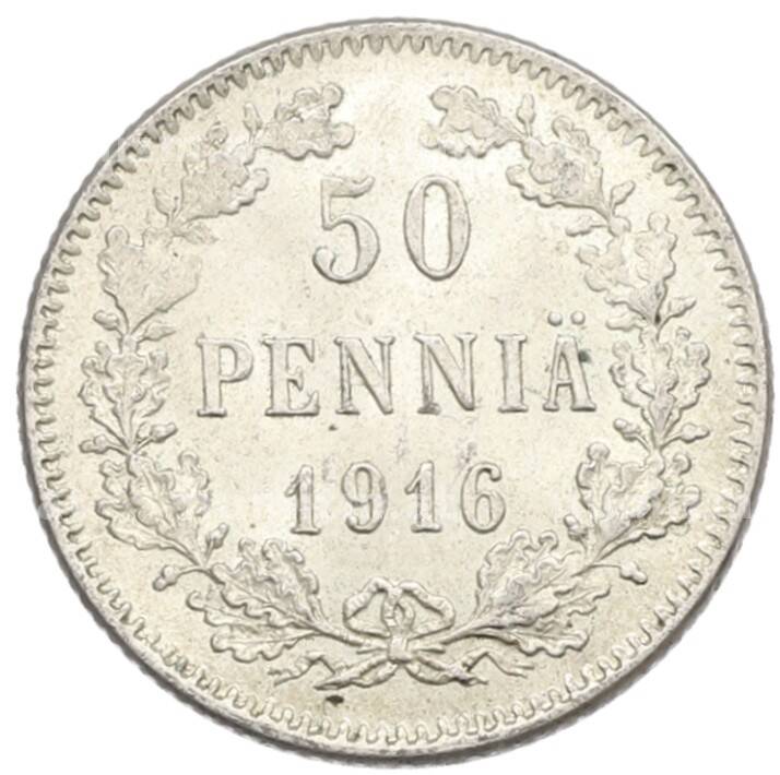 Монета 50 пенни 1916 года Русская Финляндия (Артикул: K10-5301): подробные характеристики, качественные фотографии в высоком разрешении, низкая цена.