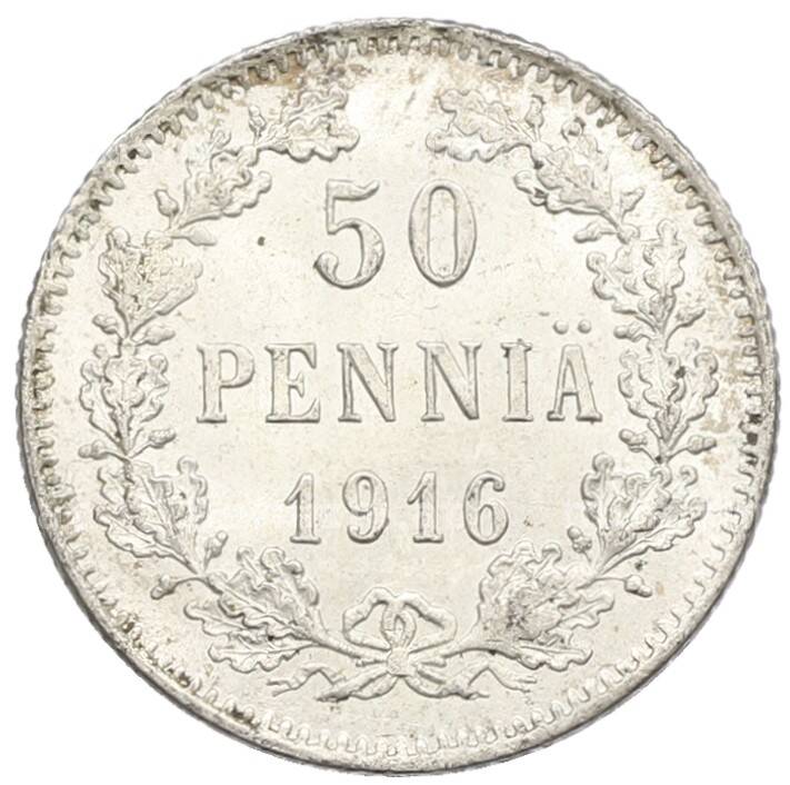 Монета 50 пенни 1916 года Русская Финляндия (Артикул: K10-5306): подробные характеристики, качественные фотографии в высоком разрешении, низкая цена.