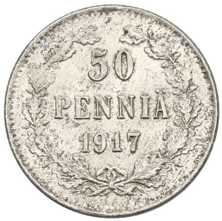 Купить 50 пенни 1917 года Русская Финляндия — Орел без корон (Временное правительство) по привлекательной цене можно в нашем интернет-магазине — Вам достаточно оформить заказ на сайте. Все монеты, представленные в каталоге, находятся в наличии на нашем складе.