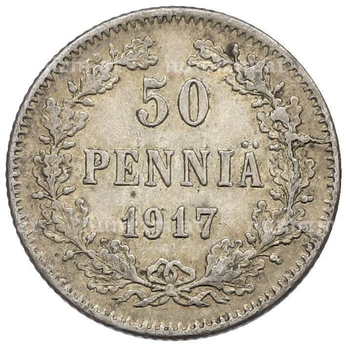 Монета 50 пенни 1917 года Русская Финляндия — Орел без корон (Временное правительство) [Артикул: K10-5320]