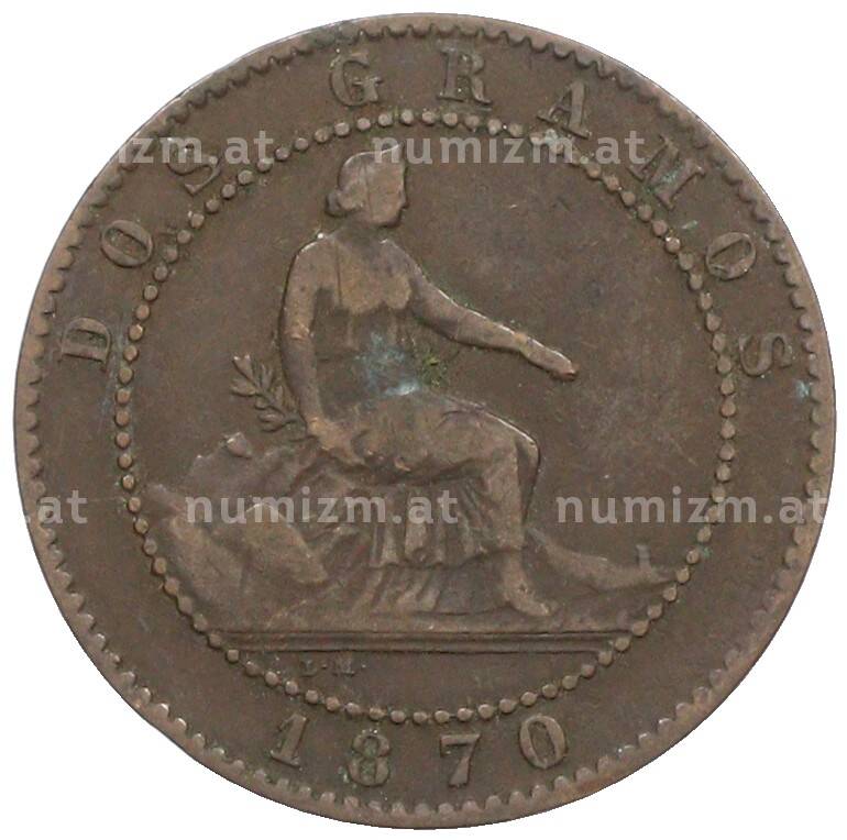 Монета 2 сентимо 1870 года Испания [Артикул: K10-5343]