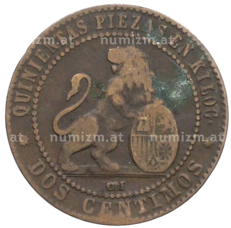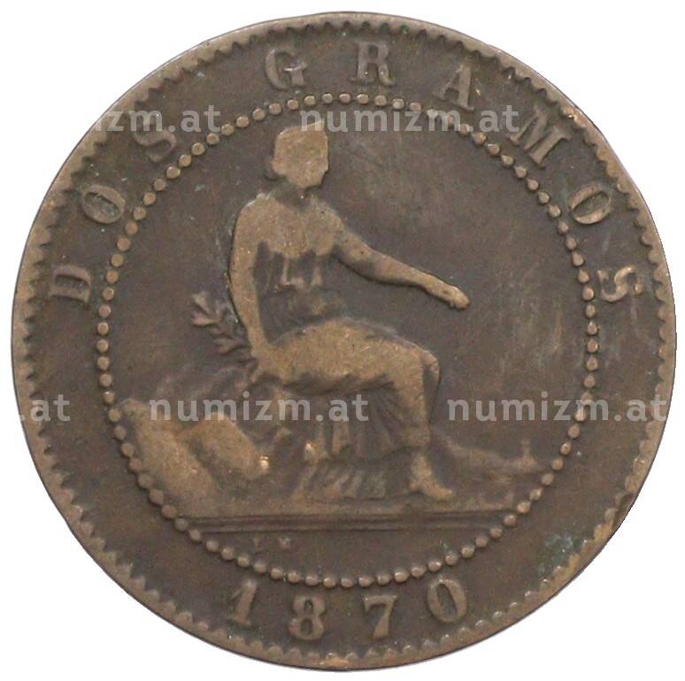 Монета 2 сентимо 1870 года Испания (Артикул: K10-5350): подробные характеристики, качественные фотографии в высоком разрешении, низкая цена.