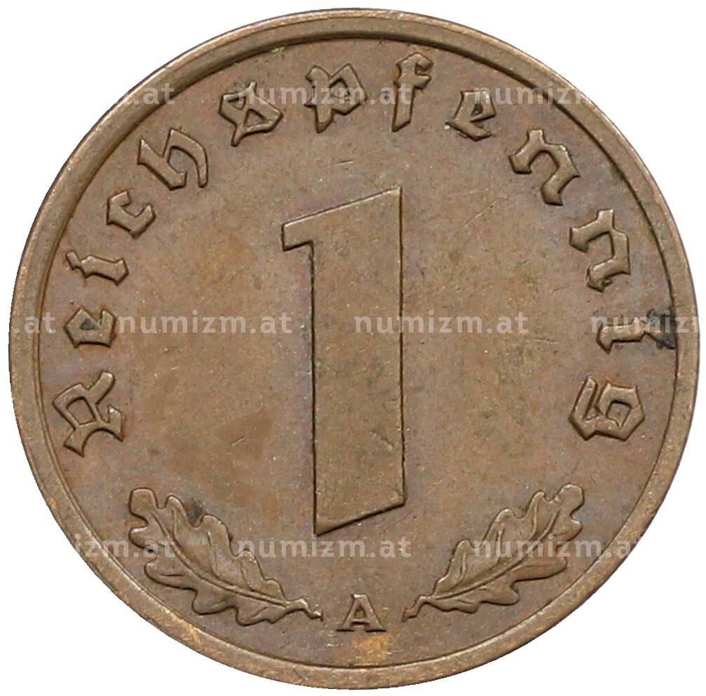 Монета 1 рейхспфенниг 1939 года A Германия (Артикул: K10-5374): подробные характеристики, качественные фотографии в высоком разрешении, низкая цена.