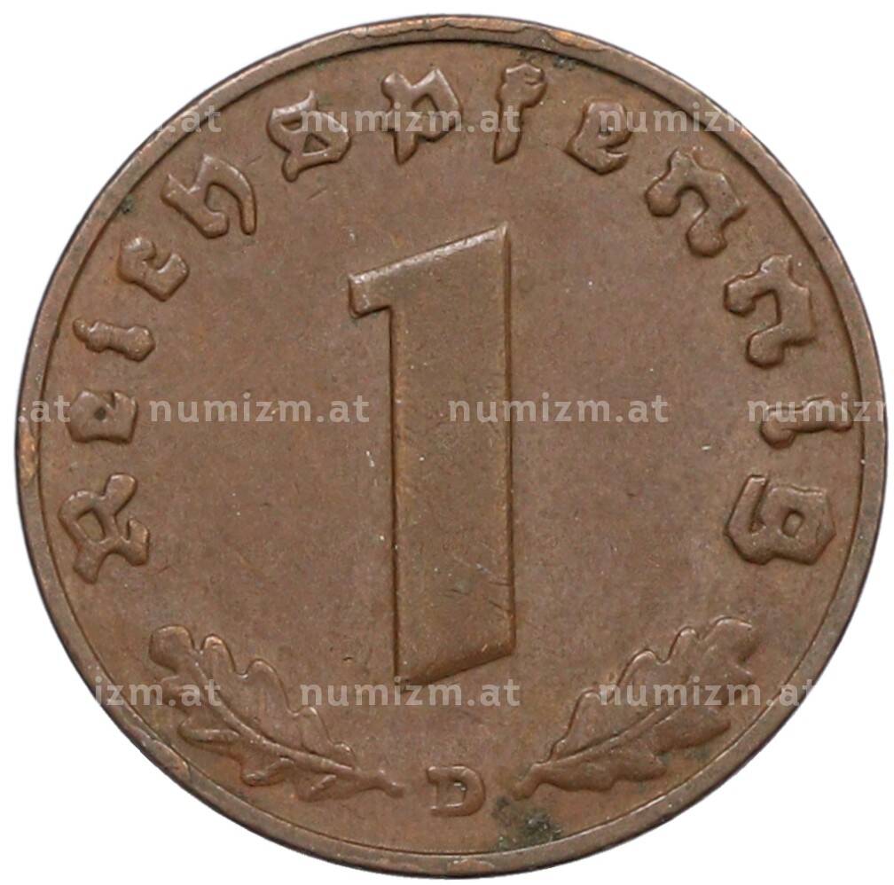 Монета 1 рейхспфенниг 1937 года D Германия (Артикул: K10-5384): подробные характеристики, качественные фотографии в высоком разрешении, низкая цена.