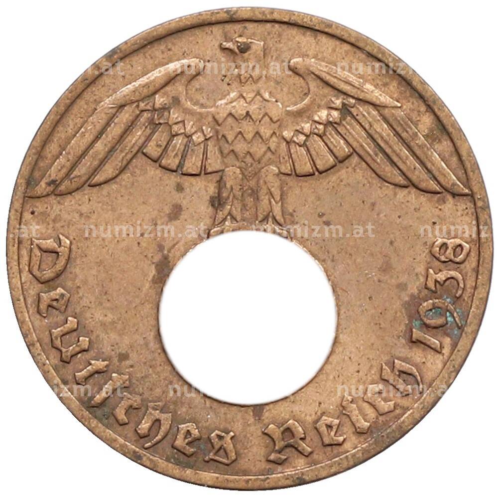 Монета 1 рейхспфенниг 1938 года E Германия (Артикул: K10-5387): подробные характеристики, качественные фотографии в высоком разрешении, низкая цена.