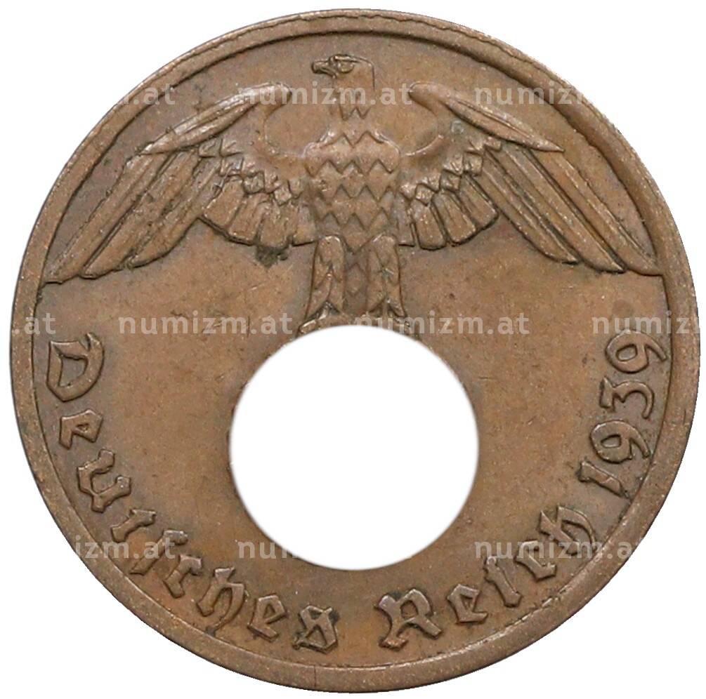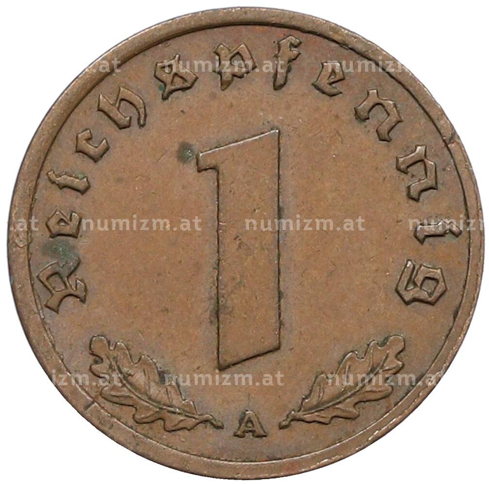 Монета 1 рейхспфенниг 1939 года A Германия (Артикул: K10-5392): подробные характеристики, качественные фотографии в высоком разрешении, низкая цена.