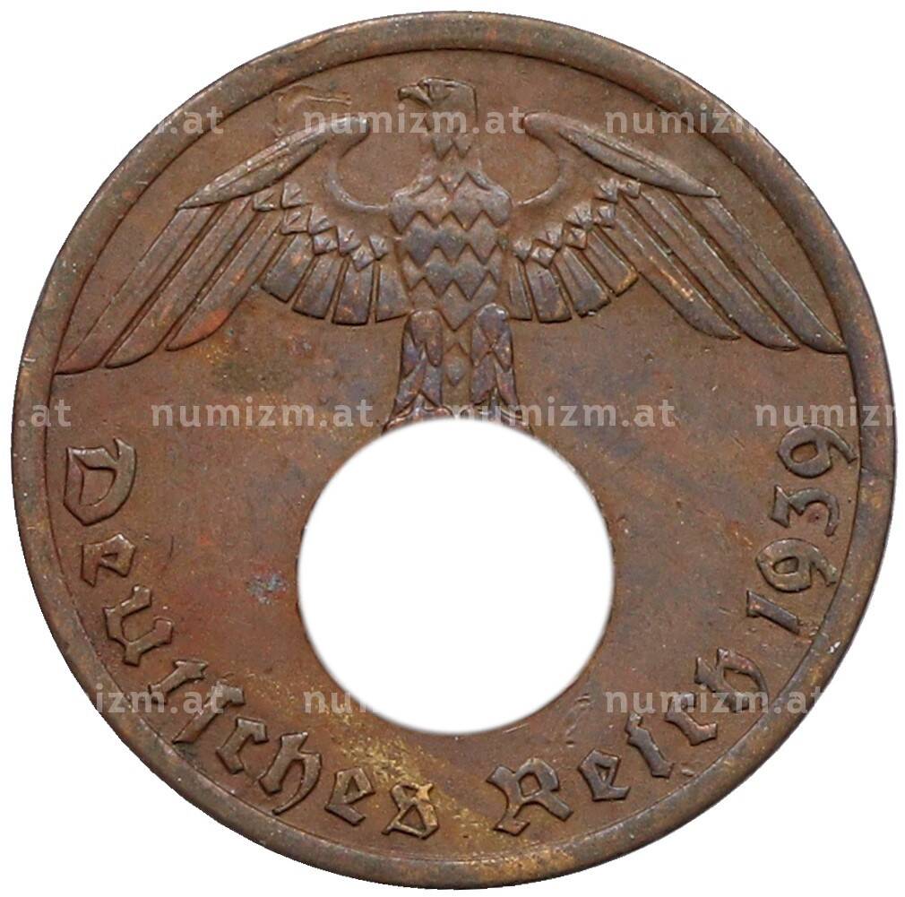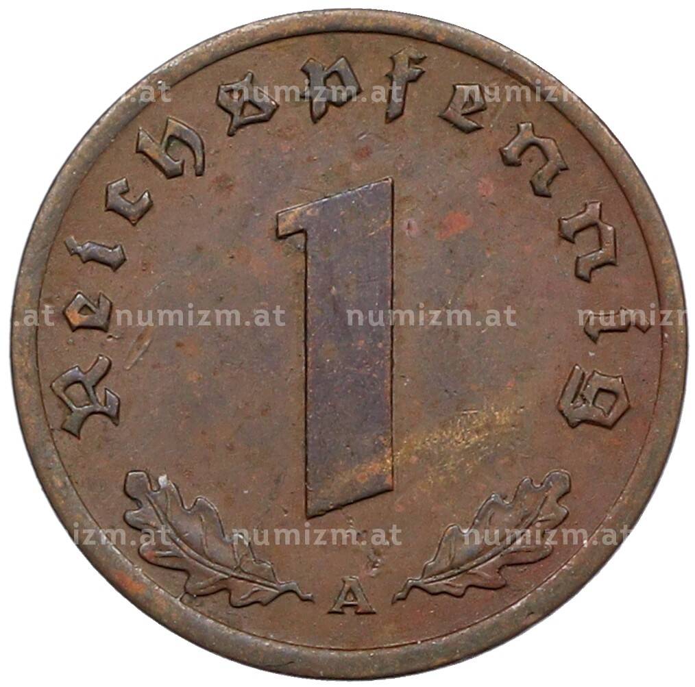 Монета 1 рейхспфенниг 1939 года A Германия (Артикул: K10-5395): подробные характеристики, качественные фотографии в высоком разрешении, низкая цена.