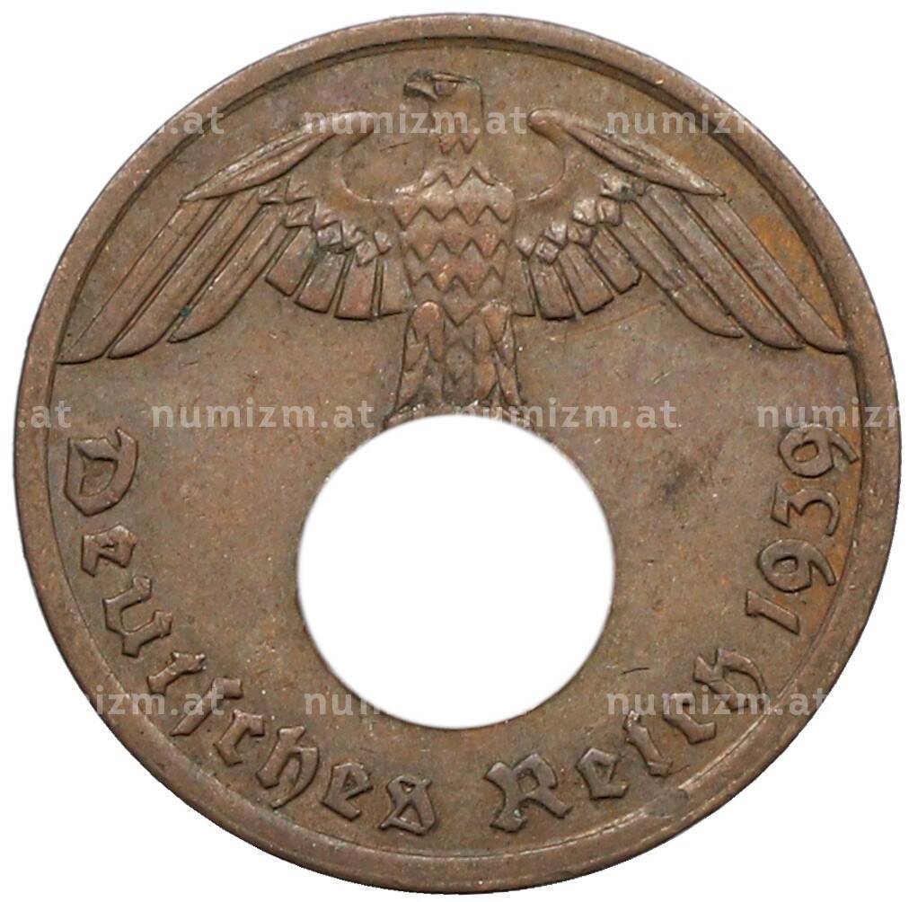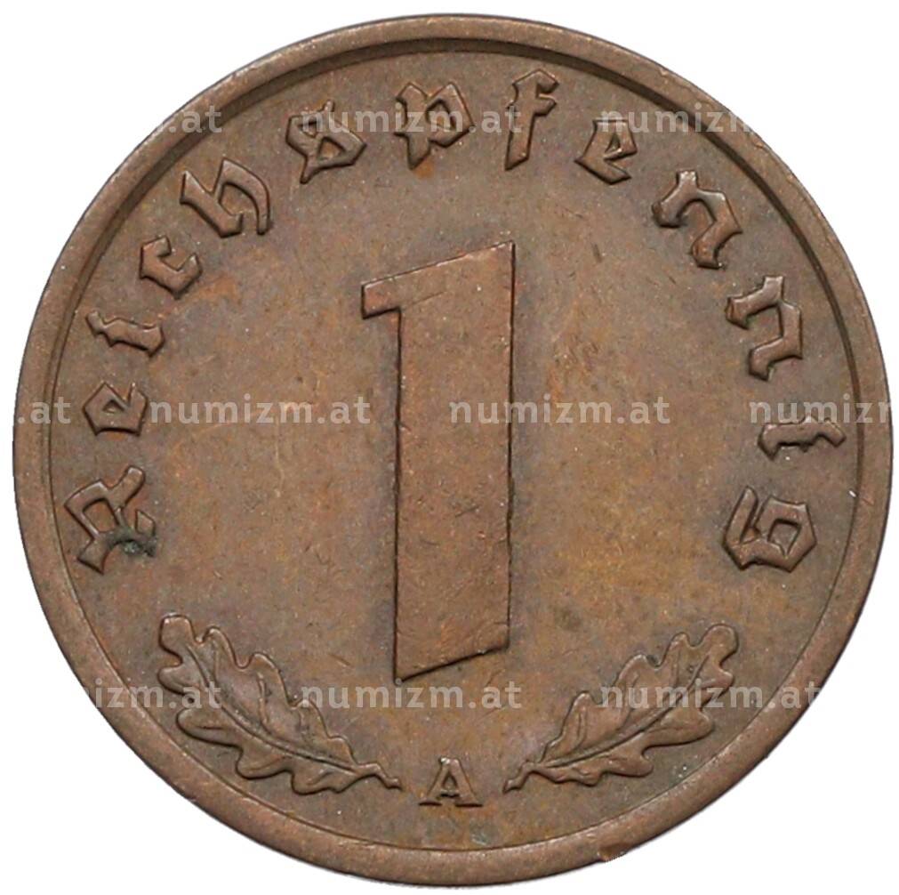 Монета 1 рейхспфенниг 1939 года A Германия (Артикул: K10-5396): подробные характеристики, качественные фотографии в высоком разрешении, низкая цена.