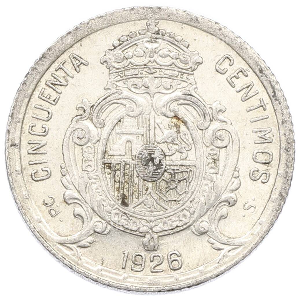 Монета 50 сентимо 1926 года Испания (Артикул: K10-5431): подробные характеристики, качественные фотографии в высоком разрешении, низкая цена.