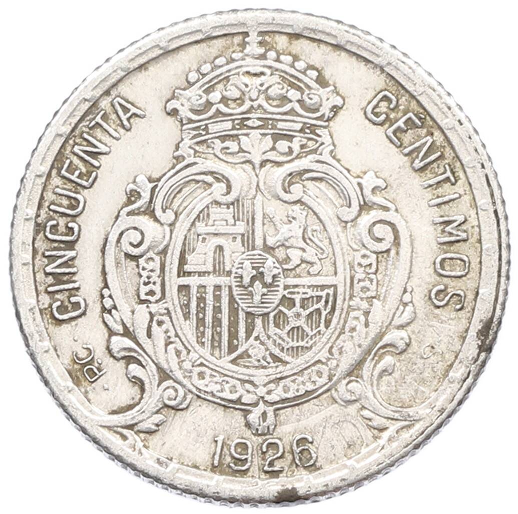 Монета 50 сентимо 1926 года Испания (Артикул: K10-5437): подробные характеристики, качественные фотографии в высоком разрешении, низкая цена.