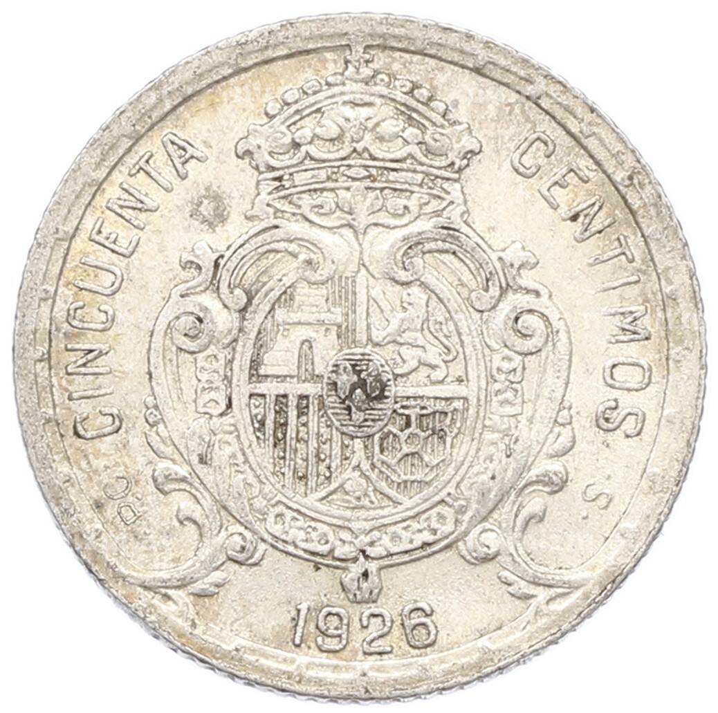 Монета 50 сентимо 1926 года Испания (Артикул: K10-5443): подробные характеристики, качественные фотографии в высоком разрешении, низкая цена.