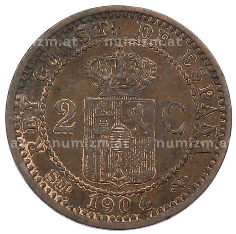 Монета 2 сентимо 1904 года Испания (Артикул: K10-5488): подробные характеристики, качественные фотографии в высоком разрешении, низкая цена.