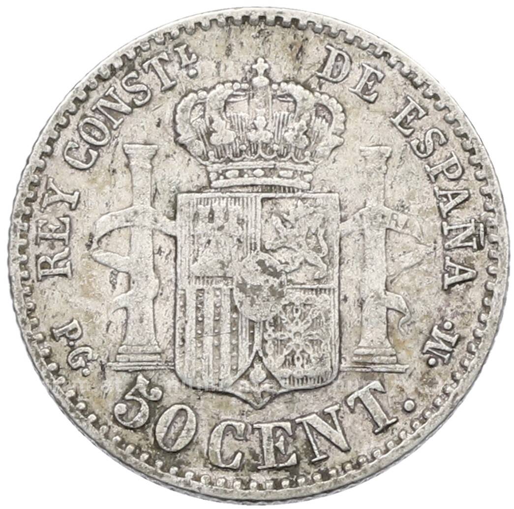 Монета 50 сентимо 1892 года Испания (Артикул: K10-5591): подробные характеристики, качественные фотографии в высоком разрешении, низкая цена.