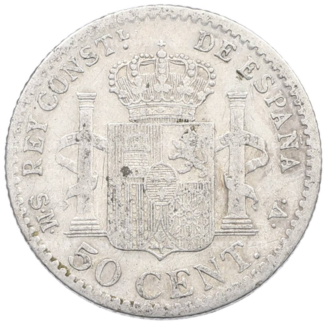 Монета 50 сентимо 1904 года Испания (Артикул: K10-5597): подробные характеристики, качественные фотографии в высоком разрешении, низкая цена.