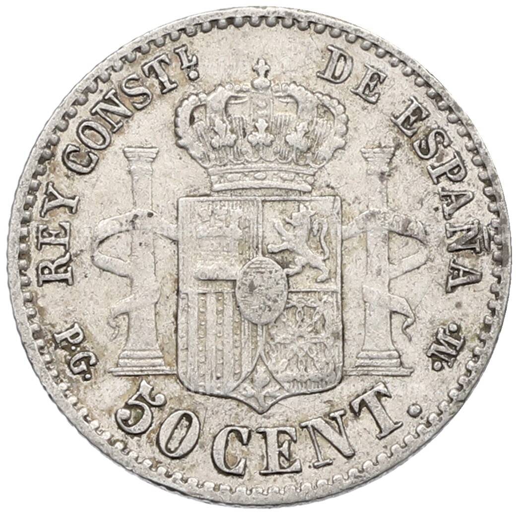 Монета 50 сентимо 1892 года Испания (Артикул: K10-5599): подробные характеристики, качественные фотографии в высоком разрешении, низкая цена.