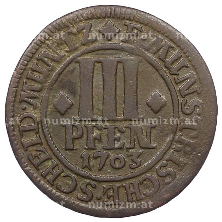 Купить 3 пфеннига 1703 года Мюнстер по привлекательной цене можно в нашем интернет-магазине — Вам достаточно оформить заказ на сайте. Все монеты, представленные в каталоге, находятся в наличии на нашем складе.