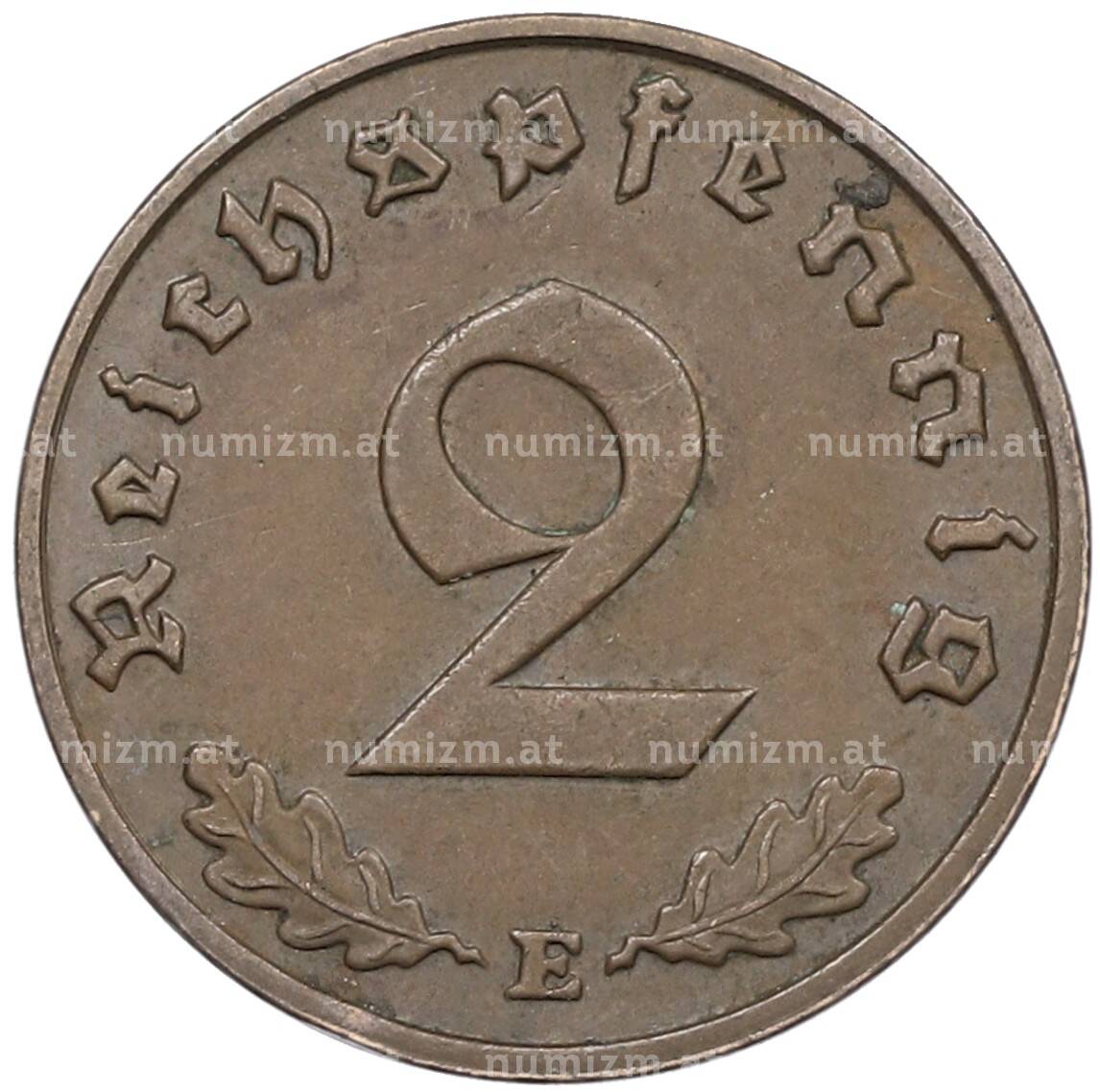 Купить 2 рейхспфеннига 1938 года E Германия по привлекательной цене можно в нашем интернет-магазине — Вам достаточно оформить заказ на сайте. Все монеты, представленные в каталоге, находятся в наличии на нашем складе.