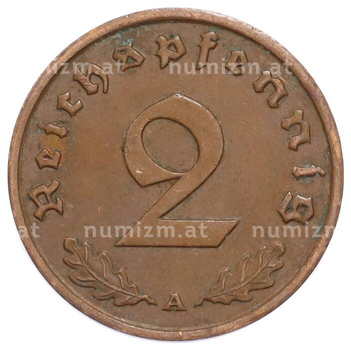 Монета 2 рейхспфеннига 1937 года A Германия (Артикул: K10-5870): подробные характеристики, качественные фотографии в высоком разрешении, низкая цена.