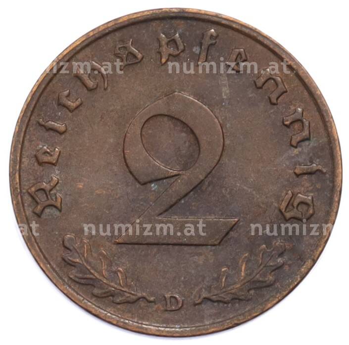 Монета 2 рейхспфеннига 1937 года D Германия (Артикул: K10-5877): подробные характеристики, качественные фотографии в высоком разрешении, низкая цена.
