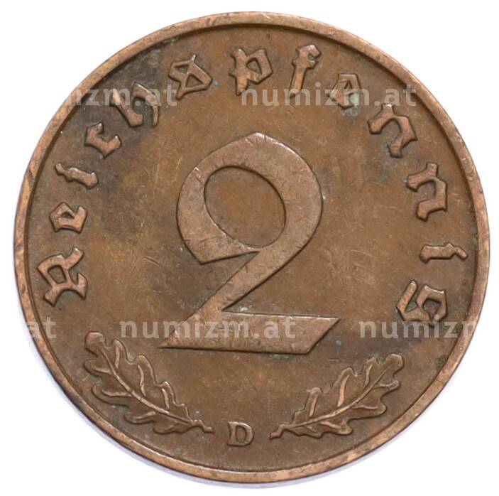 Монета 2 рейхспфеннига 1937 года D Германия (Артикул: K10-5904): подробные характеристики, качественные фотографии в высоком разрешении, низкая цена.