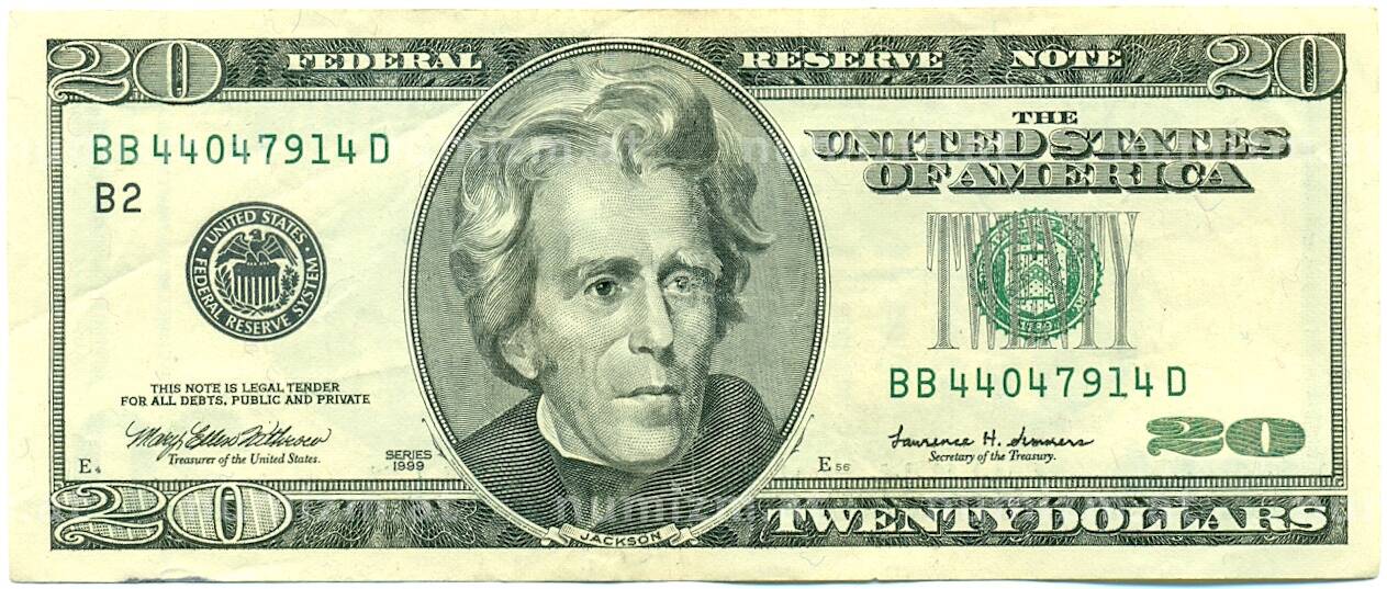 Банкнота 20 долларов 1999 года США (Артикул: K10-6044): подробные характеристики, качественные фотографии в высоком разрешении, низкая цена.