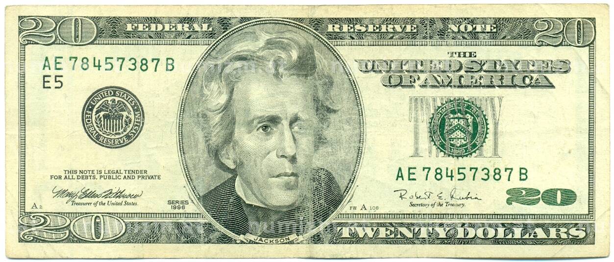 Банкнота 20 долларов 1996 года США (Артикул: K10-6055): подробные характеристики, качественные фотографии в высоком разрешении, низкая цена.