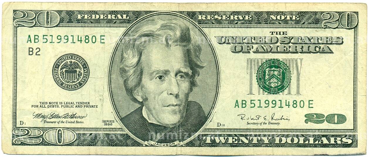 Банкнота 20 долларов 1996 года США (Артикул: K10-6078): подробные характеристики, качественные фотографии в высоком разрешении, низкая цена.