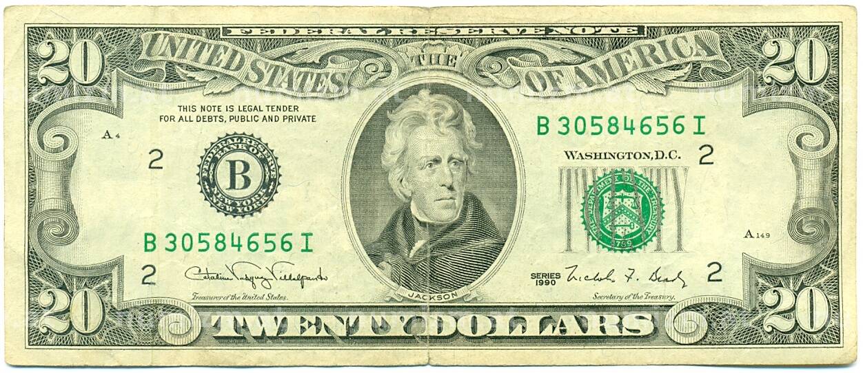Банкнота 20 долларов 1990 года США (Артикул: K10-6079): подробные характеристики, качественные фотографии в высоком разрешении, низкая цена.