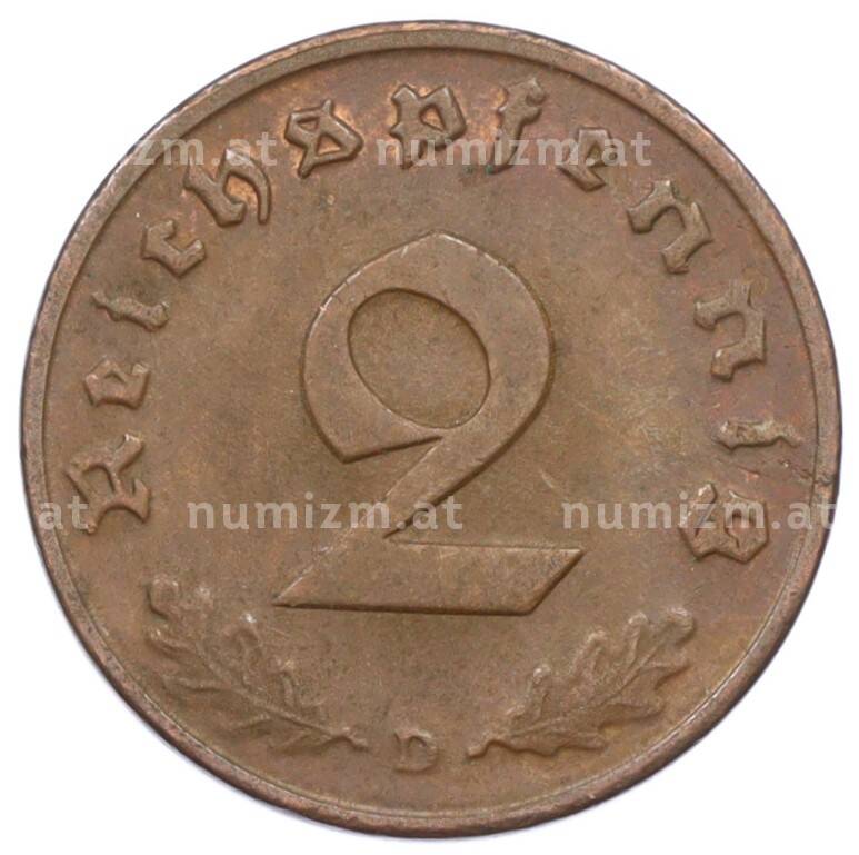Монета 2 рейхспфеннига 1937 года D Германия (Артикул: K10-6383): подробные характеристики, качественные фотографии в высоком разрешении, низкая цена.