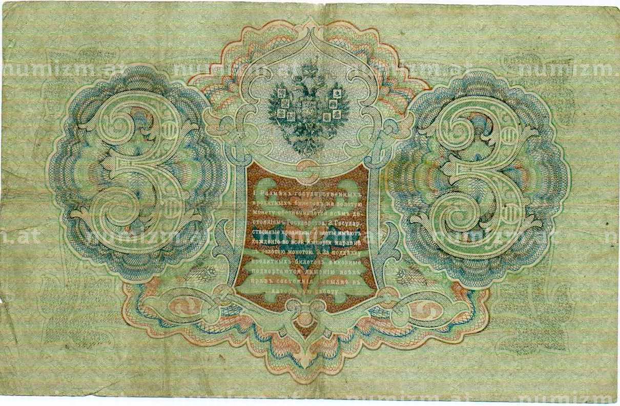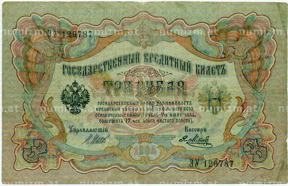 Банкнота 3 рубля 1905 года Шипов / Метц (Артикул: K10-6514): подробные характеристики, качественные фотографии в высоком разрешении, низкая цена.