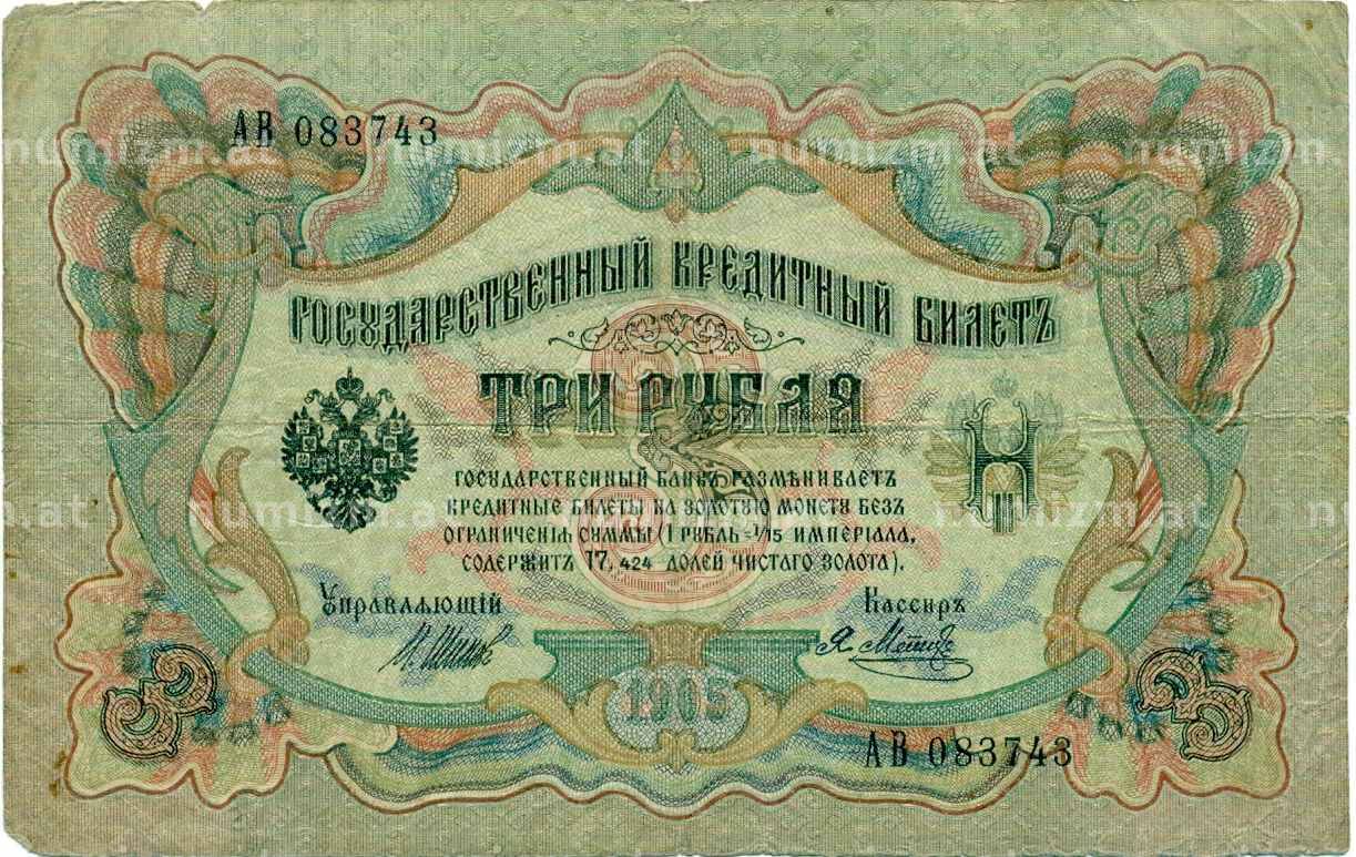 20.01.2025Интернет магазин «Нумизмат» предлагает приобрести 3 рубля 1905 года Шипов / Метц.