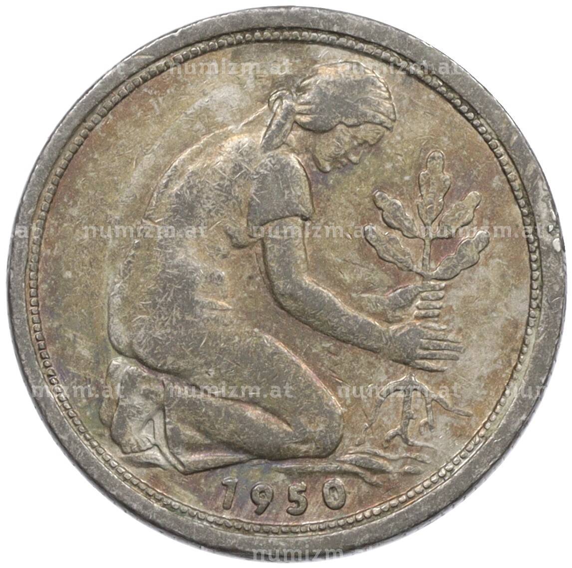 Монета 50 пфеннигов 1950 года J Западная Германия (ФРГ) (Артикул: K10-6635): подробные характеристики, качественные фотографии в высоком разрешении, низкая цена.