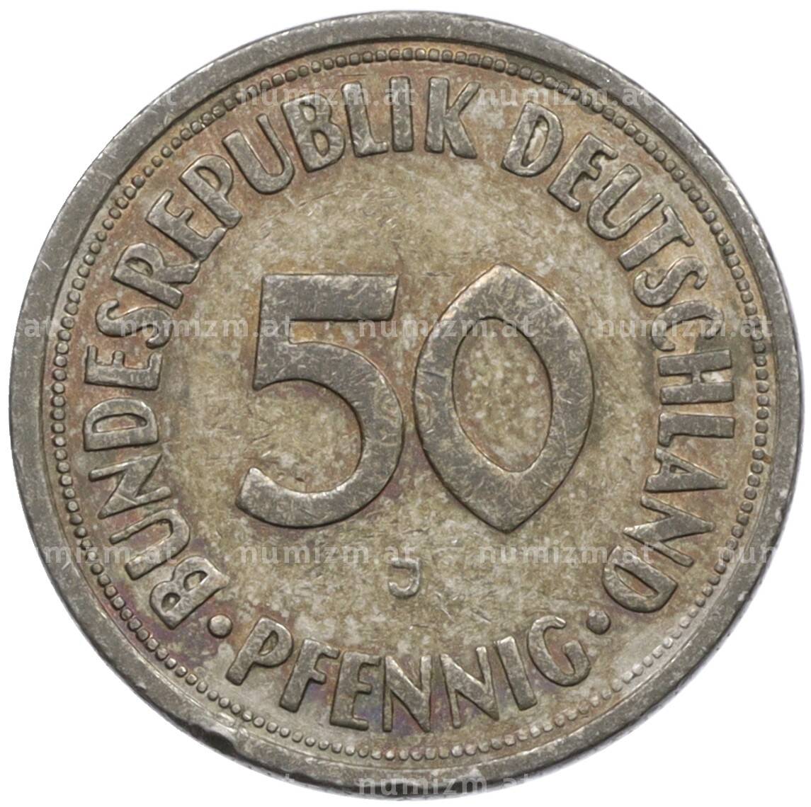 Купить 50 пфеннигов 1950 года J Западная Германия (ФРГ) по привлекательной цене можно в нашем интернет-магазине — Вам достаточно оформить заказ на сайте. Все монеты, представленные в каталоге, находятся в наличии на нашем складе.