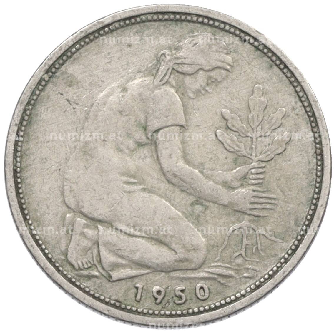 Монета 50 пфеннигов 1950 года D Западная Германия (ФРГ) (Артикул: K10-6636): подробные характеристики, качественные фотографии в высоком разрешении, низкая цена.